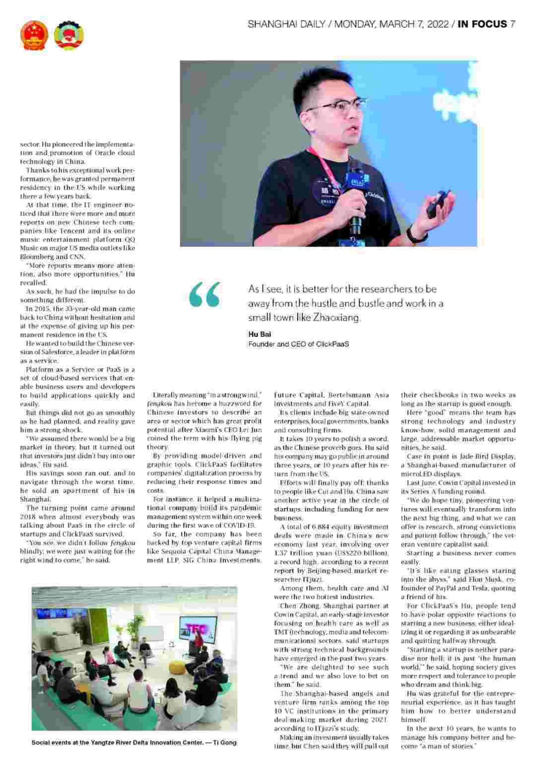 近日,,,GOPAY钱包创始人、、CEO胡柏接受了《上海日报》采访,,,关于自己当初为何选择创立GOPAY钱包,,又为何将公司落户于上海青浦,,,分享了其背后的故事。。