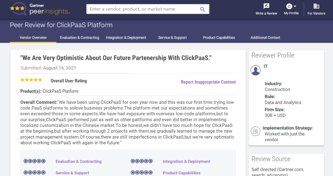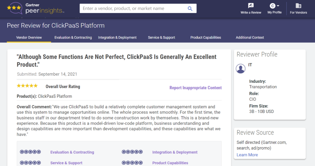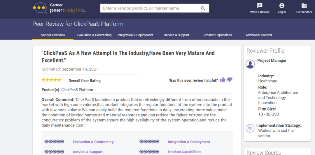 Tips::【Peer Insights】——用户对企业IT产品和服务发布真实评价的平台。。。。目前已有355个市场,,255,000条经过验证的评价。。。每一条评价Gartner会针对参评企业营收规模及参评人员信息做验证、、评价内容做多维核实。。。。